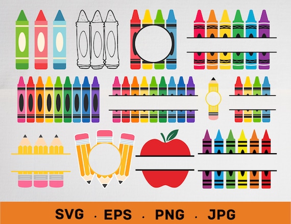 30 Crayon Split Monogram Svg Crayon Svg Teacher Svg School Etsy